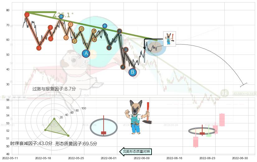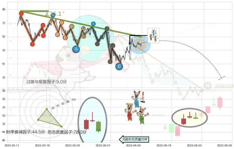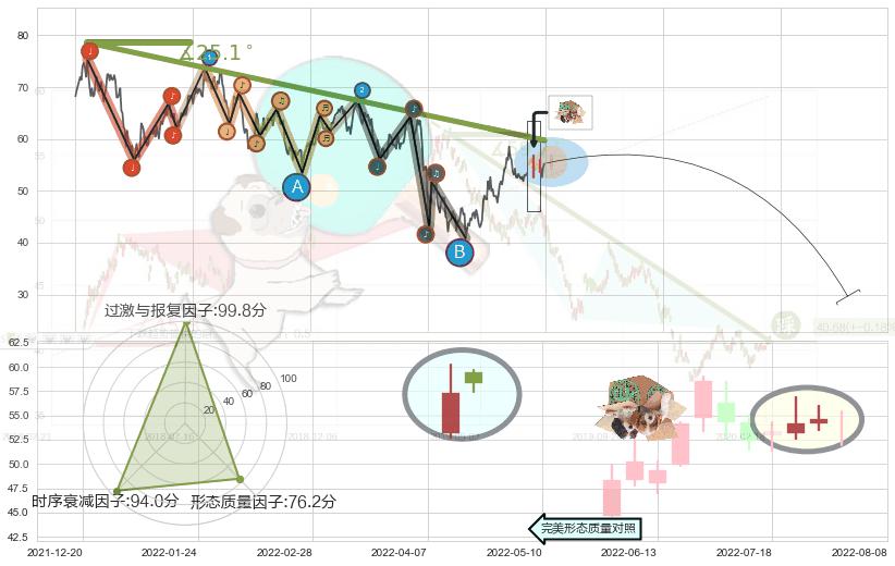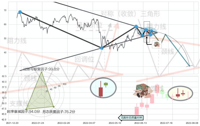 ➢ 🕰 价格走势在2022-07-25至2022-08-01期间形成顶部尽头线(下山虎),残存影响值:-4.44