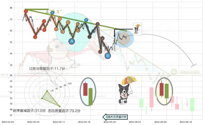 ➢ 倾盆大雨 🔜 趋势线临近恢复下跌趋势 综合量化分数:48.38 【中性】