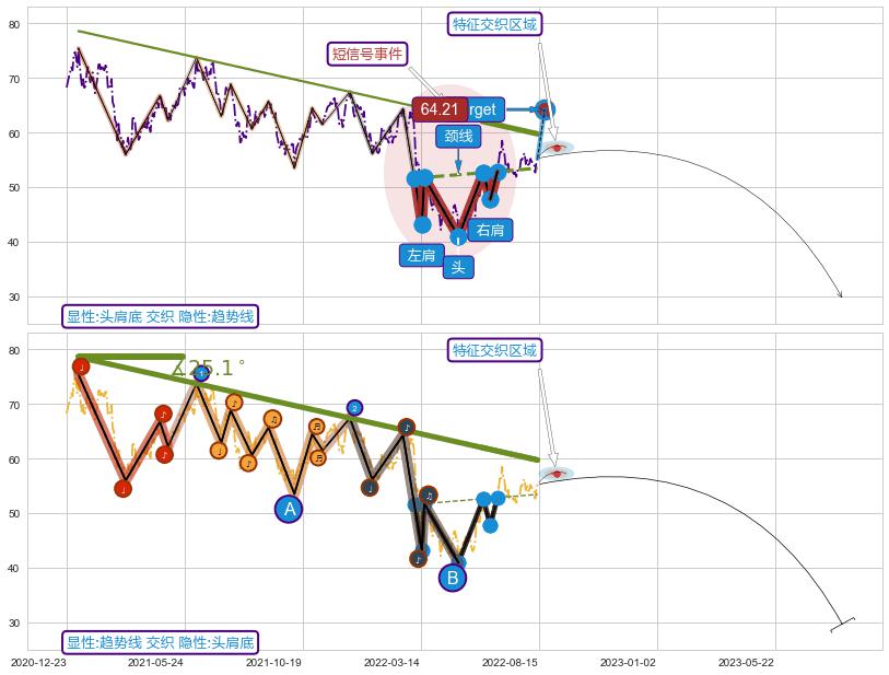 ➢ 趋势线临近恢复下跌趋势 🔜 头肩底临近target阻力拐点下跌 综合量化分数:47.48 【中性】
