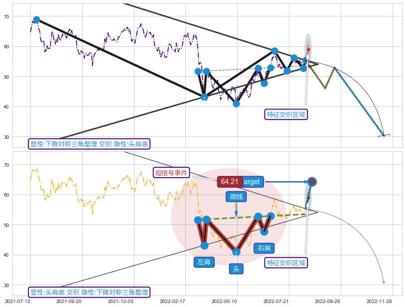 ➣ 【未确认突破,预测即将形成突破】下降【对称】三角形整理起点:2021-07-20, 预测突破点:2022-08-12,形态共261交易日