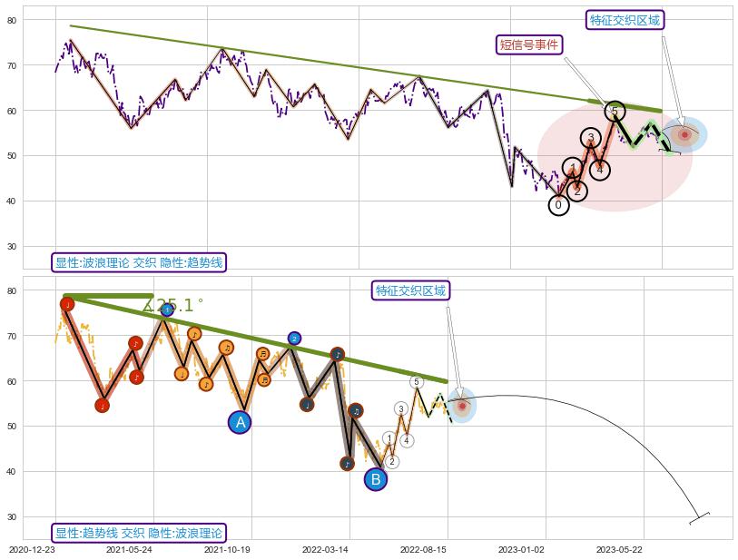 ➢ 趋势线临近恢复下跌趋势 🔜 波浪理论临近C点后破位C下跌 综合量化分数:45.40 【偏空】