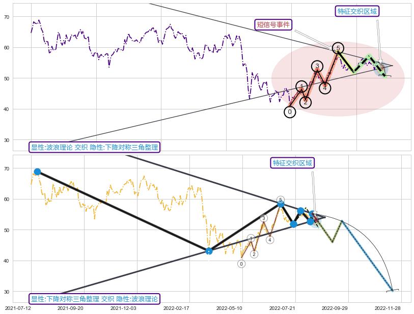 ➢ 波浪理论属【短级别信号事件】下降对称三角整理属【长级别信号事件】长短周期组合信号事件, 短长事件长度比26.05%
