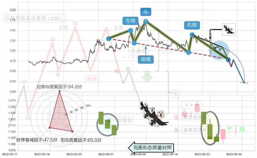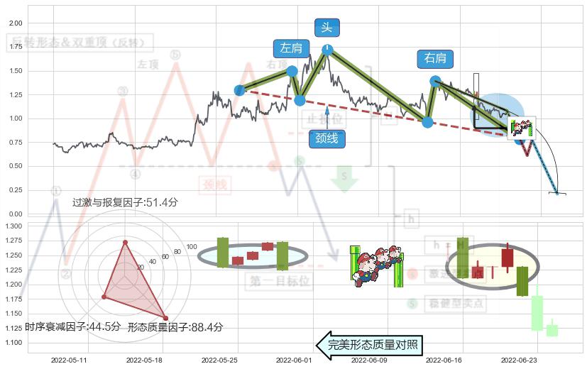 ➣ 下跌螺旋桨 + 头肩顶临近支撑猜想转换阻力下跌信号叠加后【信号初始稳固度】中等,【看空】信号叠加【可信度影响中等】