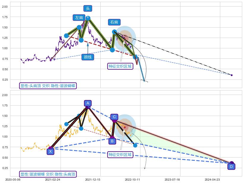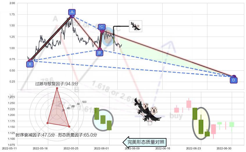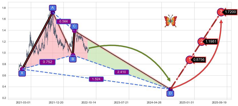 ➣ 未完成【蝴蝶】形态起点X: 2020-12-10, 已到达C点: 2022-03-29, 预测最终D点: 2024-07-11, 共900交易日