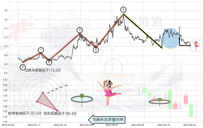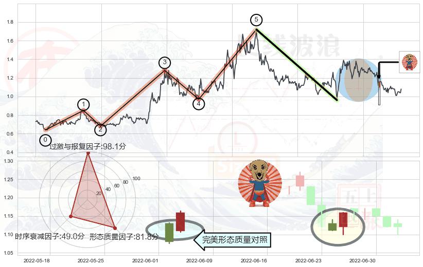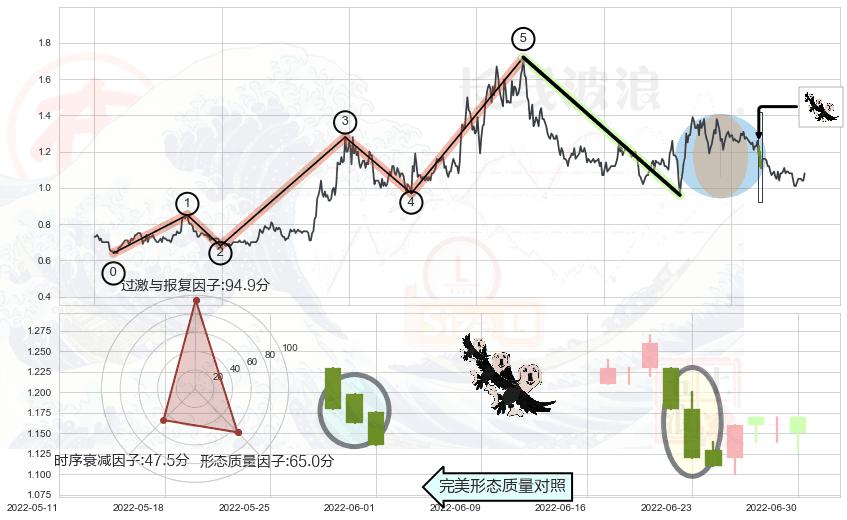 ➢ 🕰 价格走势在2022-06-16至2022-06-22期间形成下降三部曲(降势三鹤),残存影响值:-4.82