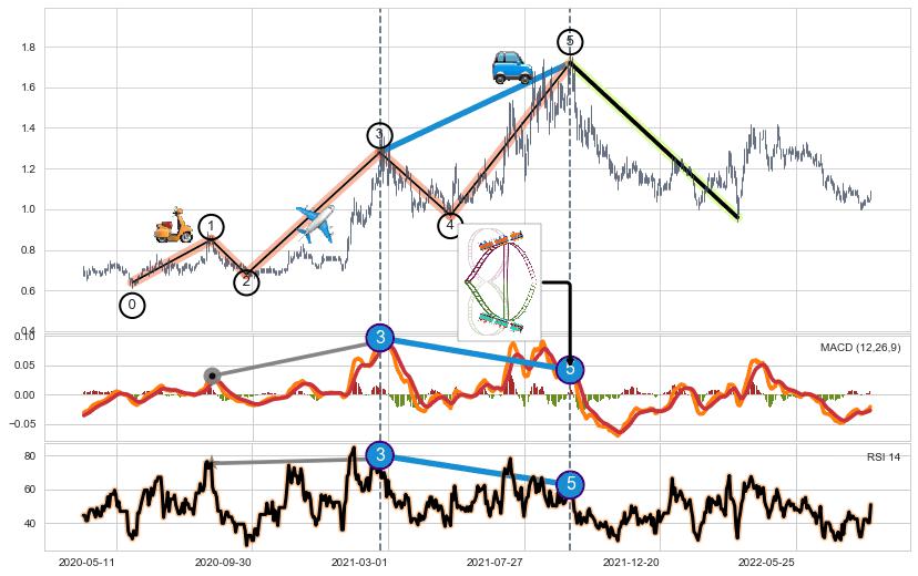 ➢ 第三,五驱动浪端点:【RSI】走势出现【常规背离 & 反转信号】背离程度63.73%,背离夹角角度91.0˚,背离程度较大