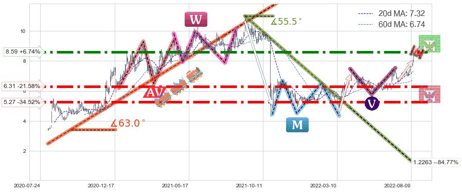 ➢ 【已确认突破】最后价格:8.05与最小【反转】第一目标价格→(2022-09-20: 10.00 )相较: 上涨空间【较大】