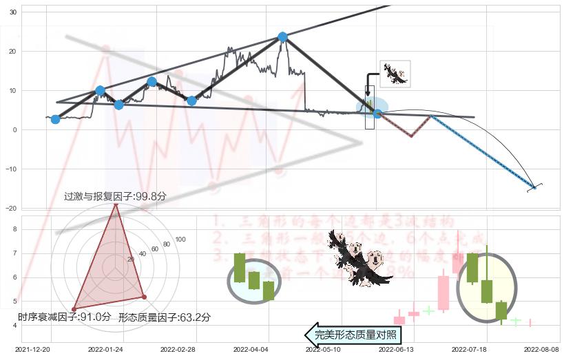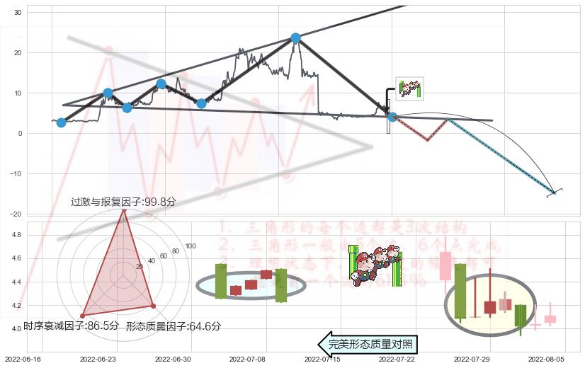 ➣ AI智能: 预测【大方向抉择→空方占优】扩散三角形反转向下突破,预测将在2022-08-16突破颈线