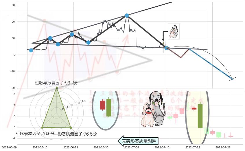 ➢ 🕰 价格走势在2022-07-27至2022-08-02期间形成下降三部曲(降势三鹤),残存影响值:-6.97