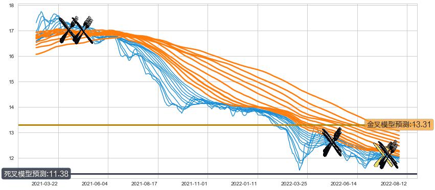 ➢ 13小时均线于(2022-05-05: 12.69)形成【死叉】基于【死叉历史模型】预测死叉后最低波谷价格: 11.39, 死叉后最低价格11.42,尚未达到预测最低波谷价格, 预期继续下跌