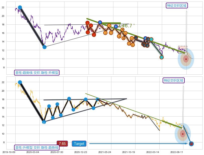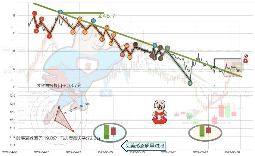 ➣ 2020-12-14-2022-04-04下跌趋势存在反转上涨[机会],其原下跌趋势的阻力位(11.16)已被突破[强支撑信号],原下跌趋势角度: 46.7˚