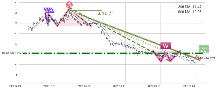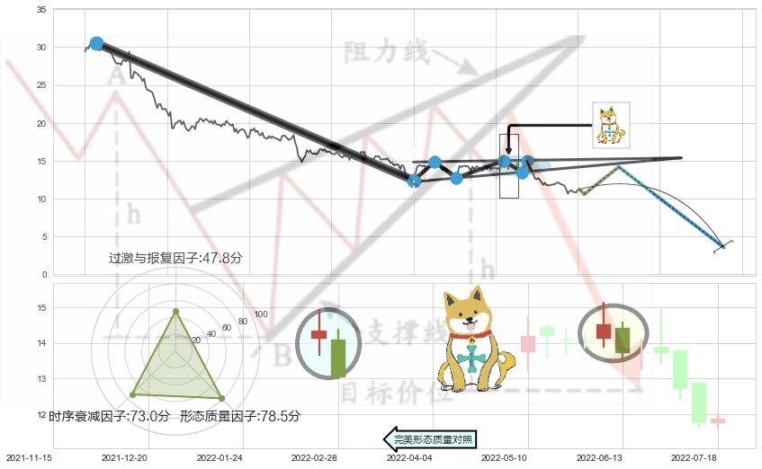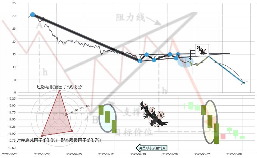 ♘ 阻力价格位15.53,可信任强度89.75%,距离最后交易2022-08-12形成的收盘价格11.22相差 +38.43%