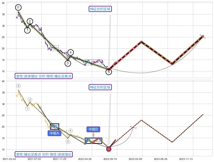 ➣ 缠论买卖点:下降缠中枢AB形成后猜想拐点1买已到达,猜想后续持续拉升(均值回复)