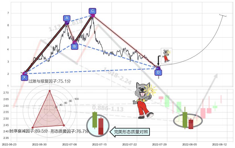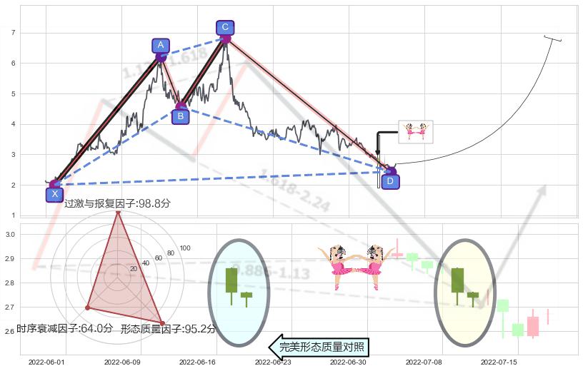 ➢ 曙光初现形态 🔜 谐波鲨鱼d拐点上涨支撑 综合量化分数:61.36 【偏多】