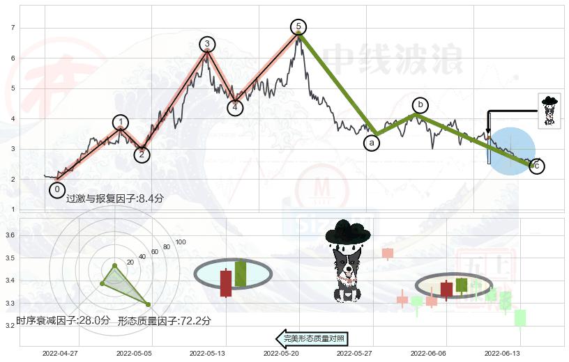 ➢ 下跌身怀六甲 + 波浪理论击穿破位C点继续下跌信号叠加后【反向回撤率】中等,【看空】信号叠加【存续影响中等】
