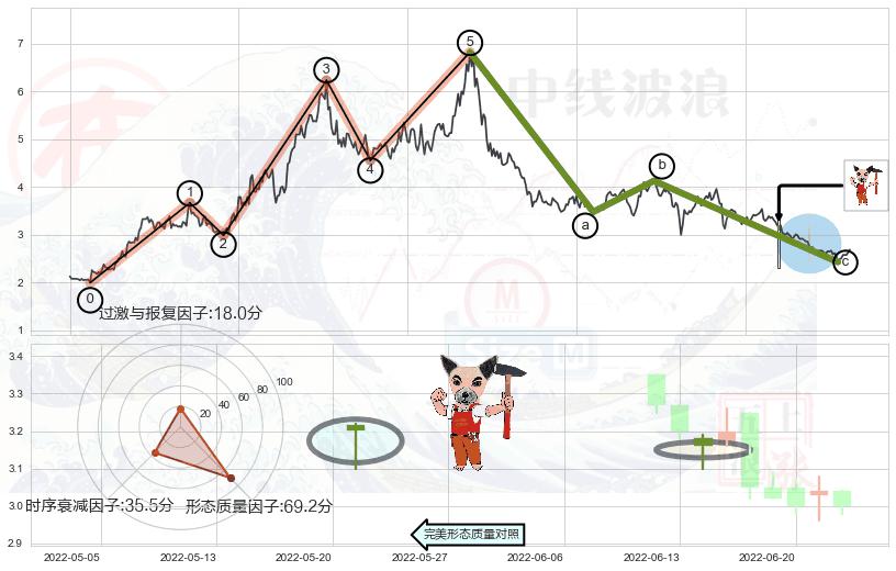 ➣ 下跌螺旋桨 + 波浪理论击穿破位C点继续下跌信号叠加后【信号初始稳固度】中等,【看空】信号叠加【可信度影响中等】