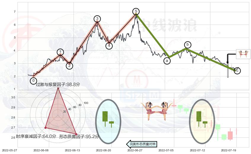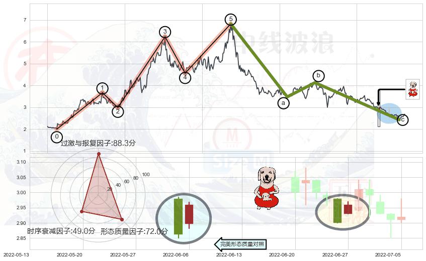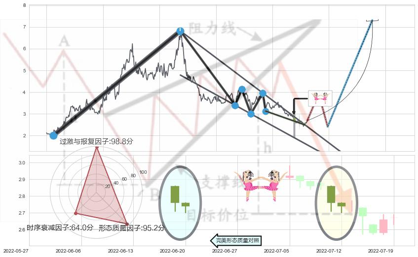 ➢ 🕰 价格走势在2022-07-06至2022-07-07期间形成底部尽头线(上山虎),残存影响值:2.38