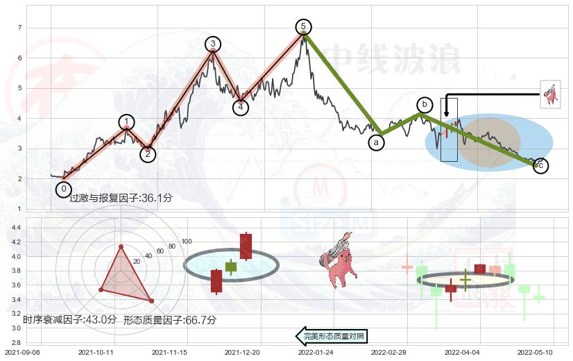 ➢ 下跌螺旋桨 🔜 波浪理论击穿破位C点继续下跌 综合量化分数:47.13 【中性】