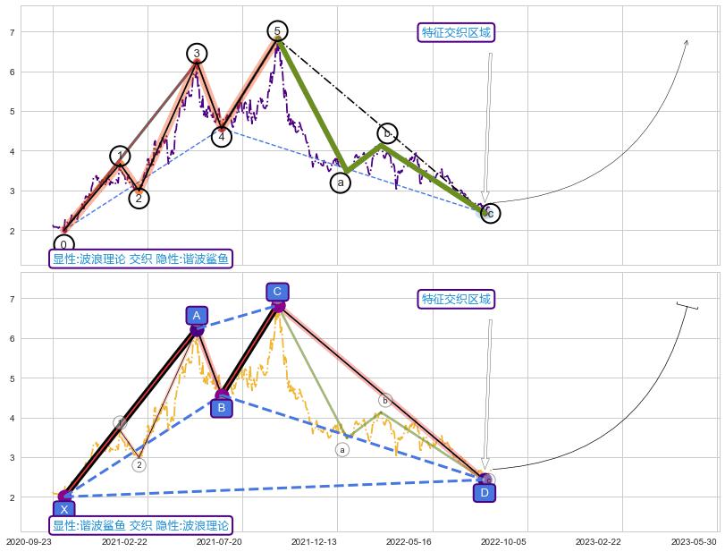 ➢ 波浪理论与谐波鲨鱼信号事件周期长度级别相同,同周期信号事件