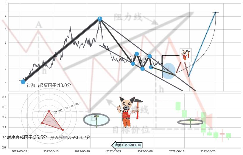 ➢ 🕰 价格走势在2022-06-14至2022-06-14期间形成锤头线(锤子线),残存影响值:2.64