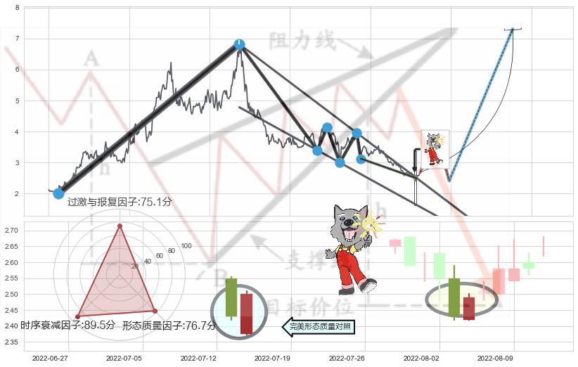 ➢ 【买1】: 激进型 买点 →(2022-08-08: 2.491 )形成突破降🚩楔型【整理】形态