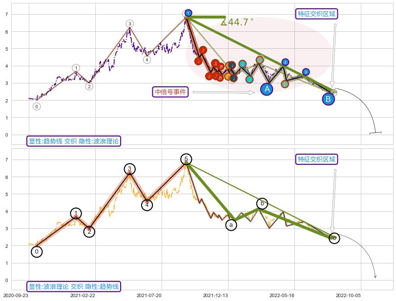 从2021-09-09至2021-12-10,共包含63个交易日,阶段股价下跌-58.75%,阶段股价变动位移路程比: 1 : 2,下跌趋势角度: 72.5