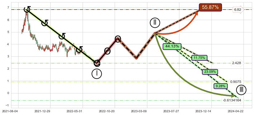 ➢ 循环浪继续向下【最高】位置(2023-12-21, 2.428),匹配聚类样本比例26.63%, 可能性概率11.75%