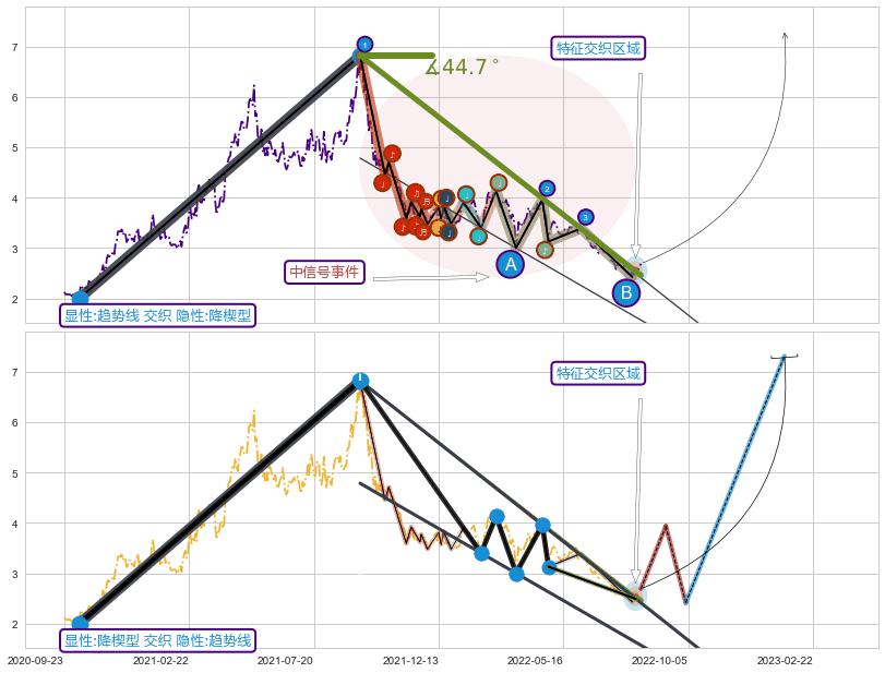 ➢ 趋势线属【中级别信号事件】降楔型属【长级别信号事件】中长周期组合信号事件,中长事件长度比49.44%