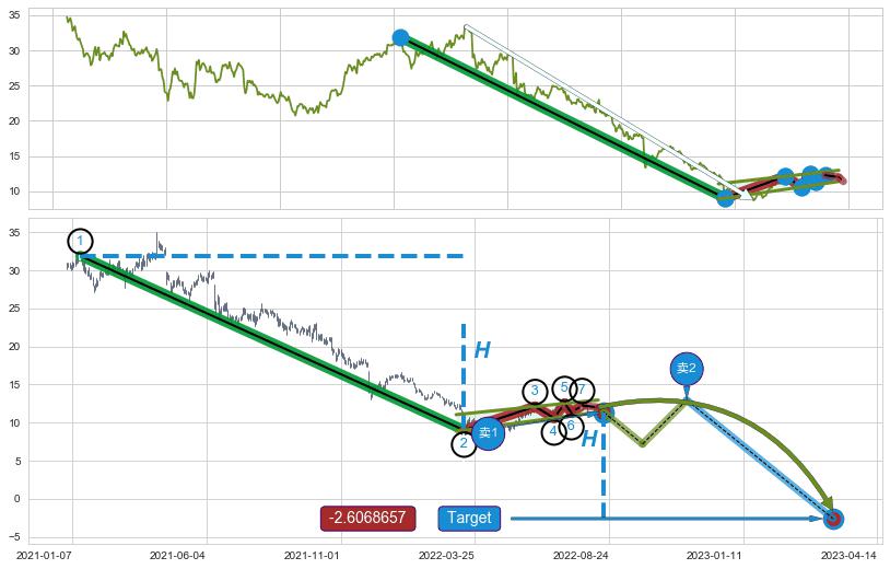 ➣ 【看空】信号叠加后首先朝【反向回撤】方向,之后再次起到影响朝【目标达成】方向
