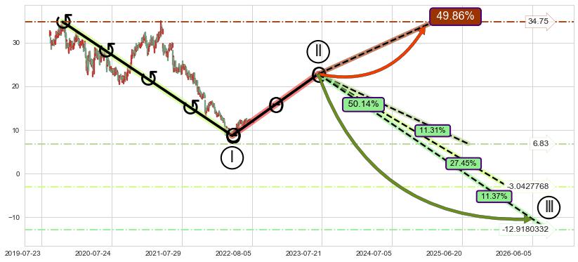 ➣ 大趋势循环浪继续向下概率50.14%