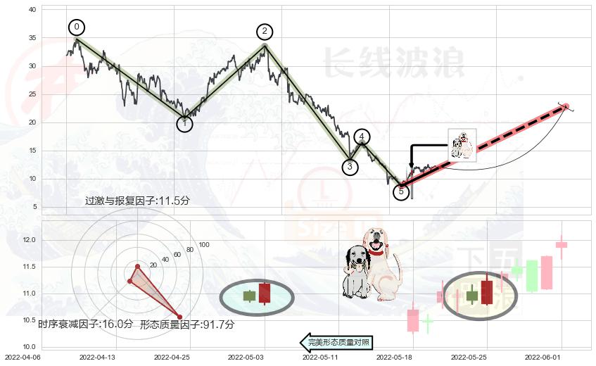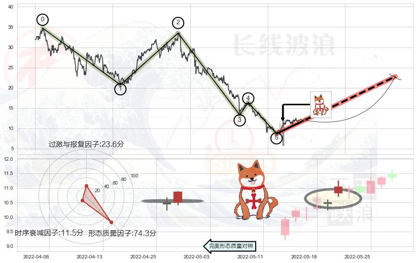 ➣ 中流砥柱形态 + 波浪理论下跌浪:浪5反弹拐点信号叠加后【反向回撤率】极低,【看多】信号叠加【存续影响极大】