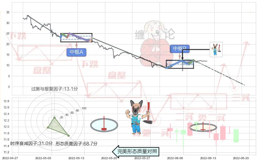 ➢ 看跌(高位倒锤头)流星线 🔜 缠论中枢点破位中枢B支撑下拉 综合量化分数:47.31 【中性】