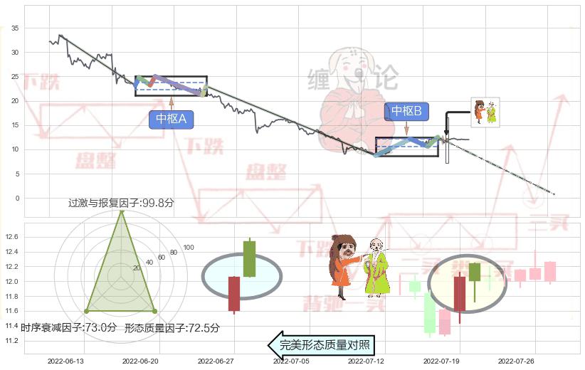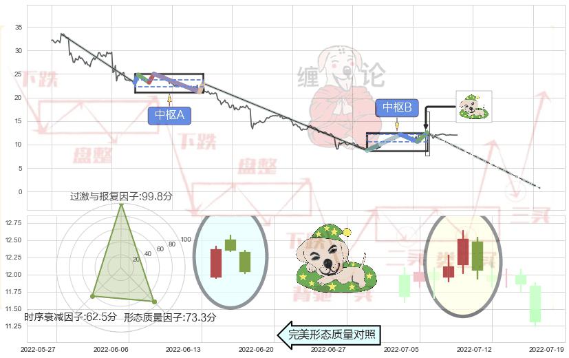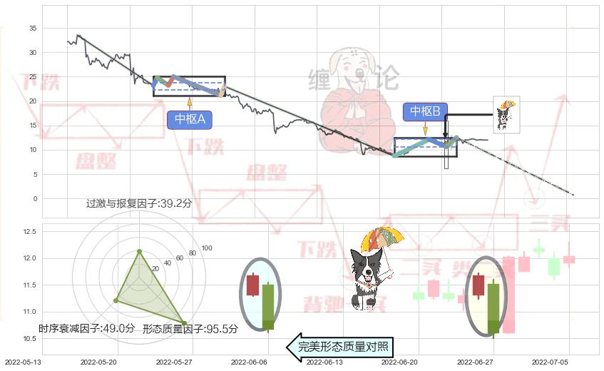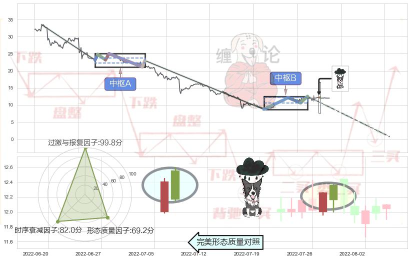 ➣ 下跌孤独十字星 + 缠论中枢点破位中枢B支撑下拉信号叠加后【信号初始稳固度】中等,【看空】信号叠加【可信度影响中等】