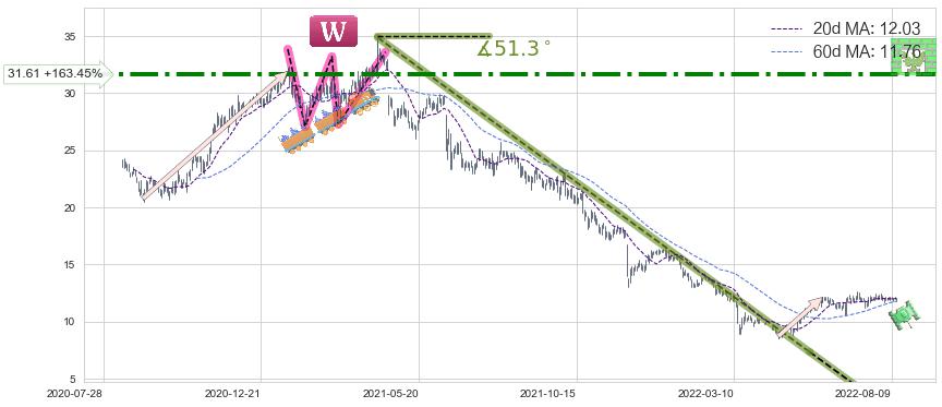♘ 阻力价格位31.61,可信任强度83.87%,距离最后交易2022-08-12形成的收盘价格12.00相差 +163.45%