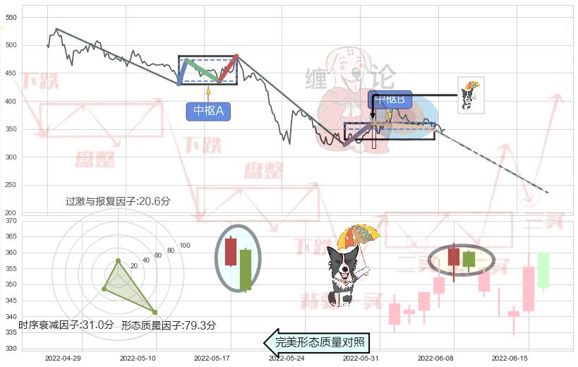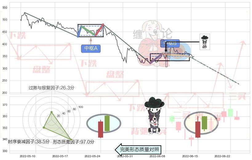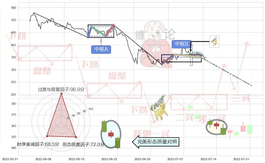 ➣ 看跌(高位倒锤头)流星线 + 缠论中枢点破位中枢B支撑下拉信号叠加后【目标达成率】中等,【看空】信号叠加【存续影响中等】