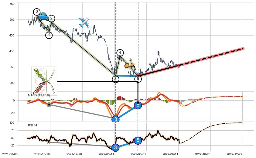 ➣ AI预测: 假定反转启动后, 第❸目标位置(2023-02-21, 321.00)