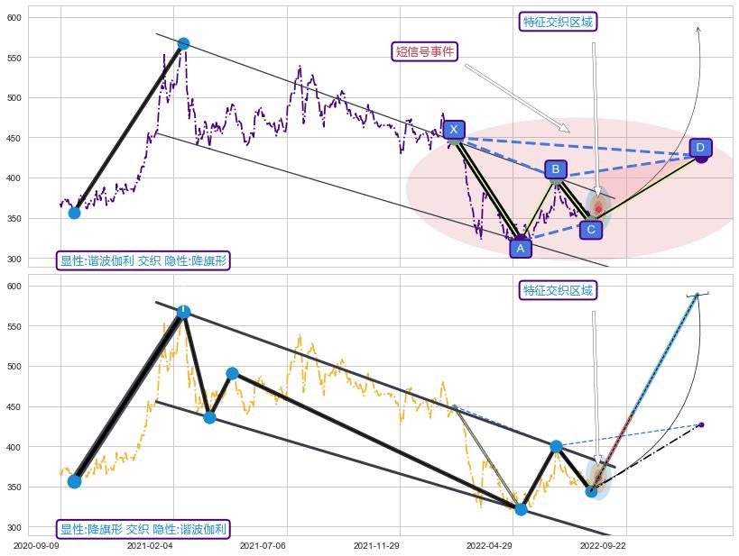 ➢ 谐波伽利属【短级别信号事件】降旗形属【长级别信号事件】长短周期组合信号事件, 短长事件长度比26.96%