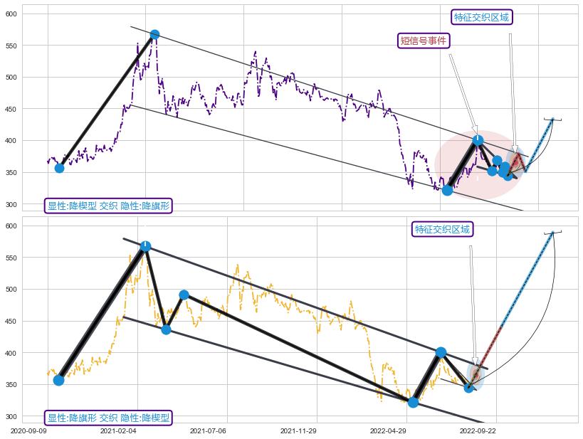 ➢ 降楔型属【短级别信号事件】降旗形属【长级别信号事件】长短周期组合信号事件, 短长事件长度比14.13%