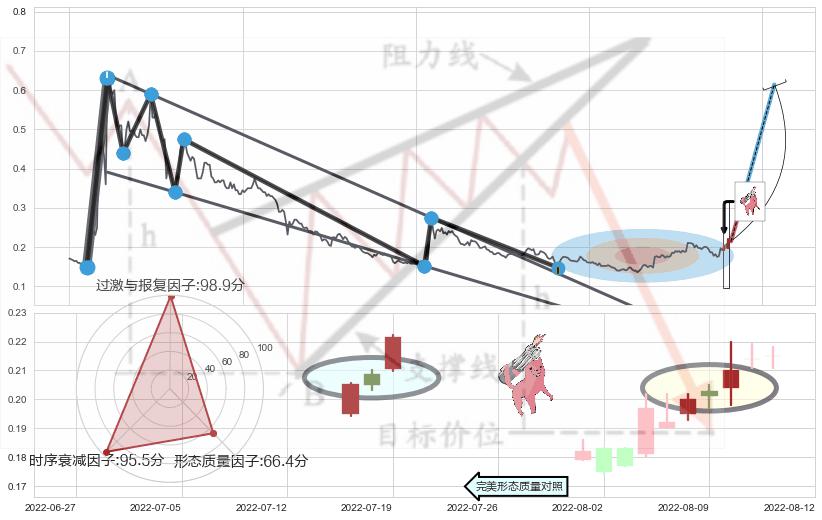 ♘ 阻力价格位0.5856,可信任强度60.32%,距离最后交易2022-08-12形成的收盘价格0.215000相差 +172.38%