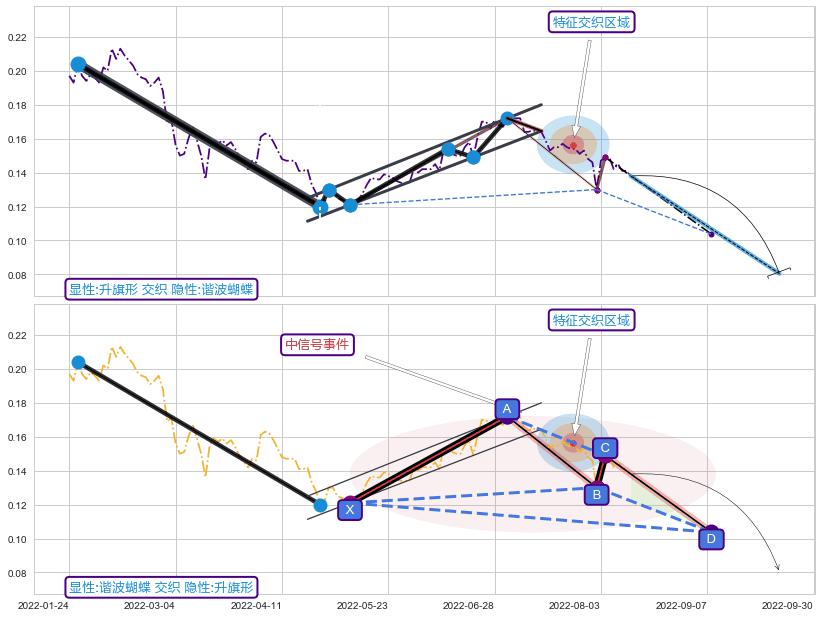➢ 未完成【蝴蝶】形态起点X: 2022-05-10, 已到达C点: 2022-08-04, 预测最终D点: 2022-09-08, 共86交易日
