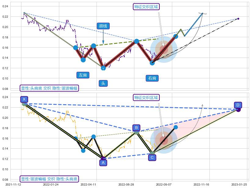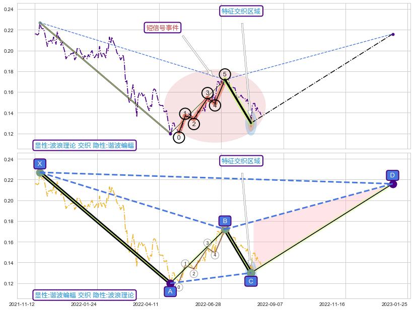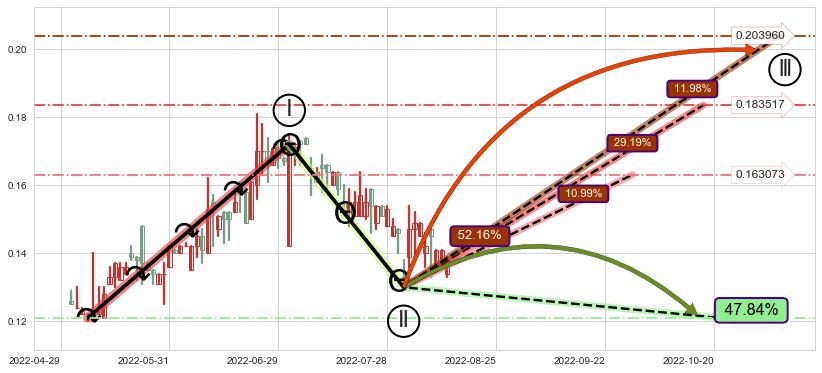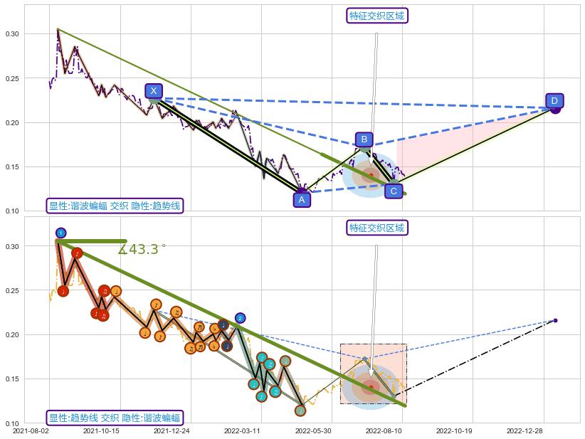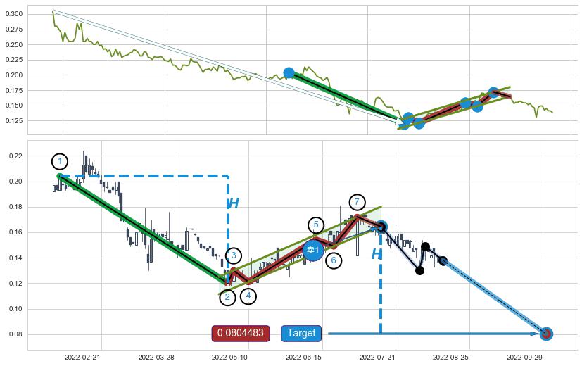 ➣ D点拟合预测价格0.215942,距离最后交易收盘价格0.138000相差 +56.48%