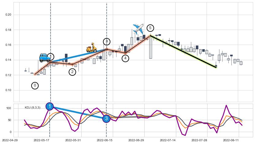 ➢ AI预测: 假定反转启动后, 第❷目标位置(2023-02-14, 0.156650)