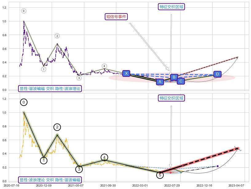 ➢ 波浪理论属【短级别信号事件】谐波蝙蝠属【长级别信号事件】长短周期组合信号事件, 短长事件长度比32.96%