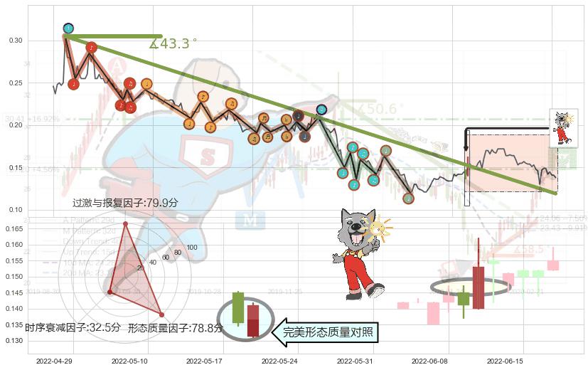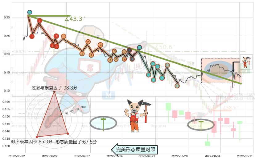 ➣ 2021-08-10-2022-05-19下跌趋势存在反转上涨[机会],其原下跌趋势的阻力位(0.119047)已被突破[强支撑信号],原下跌趋势角度: 43.3˚