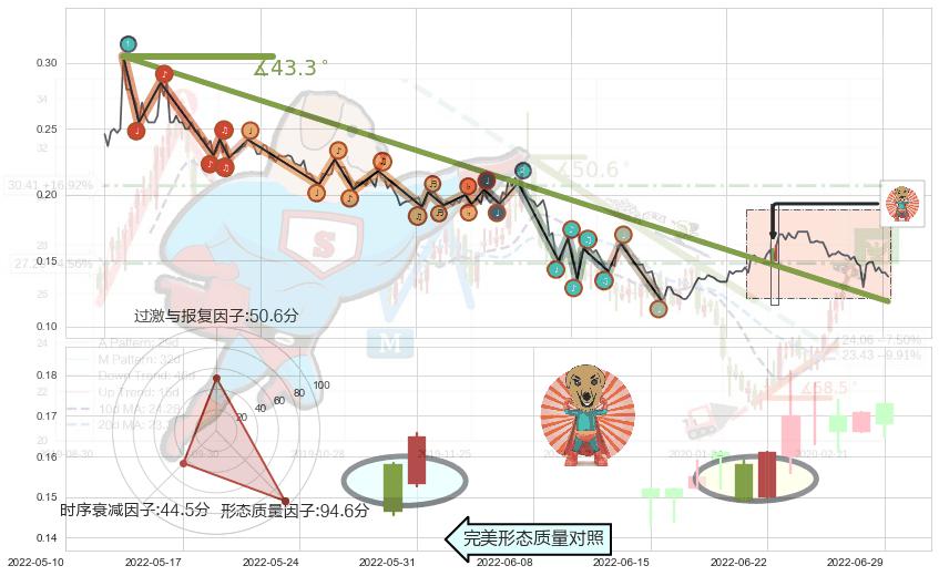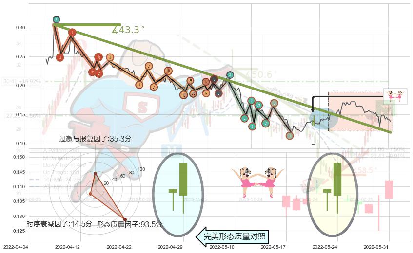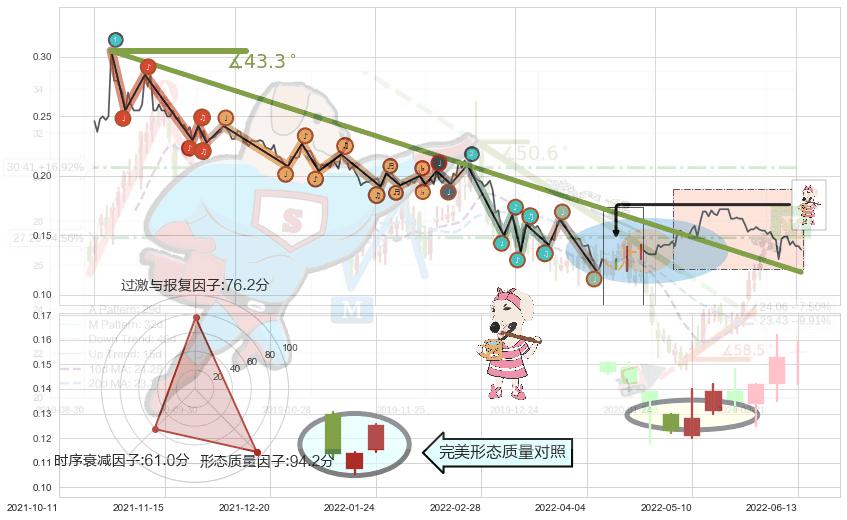 ➢ 2021-08-10-2022-05-19下跌趋势存在反转上涨[机会],其原下跌趋势的阻力位(0.119047)已被突破[强支撑信号],原下跌趋势角度: 43.3˚