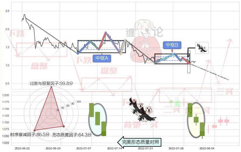 ➣ 【中枢B】:2022-05-26-2022-08-02,中枢由5笔构成,共47交易日, ZG=1.2100, ZD=1.1300
