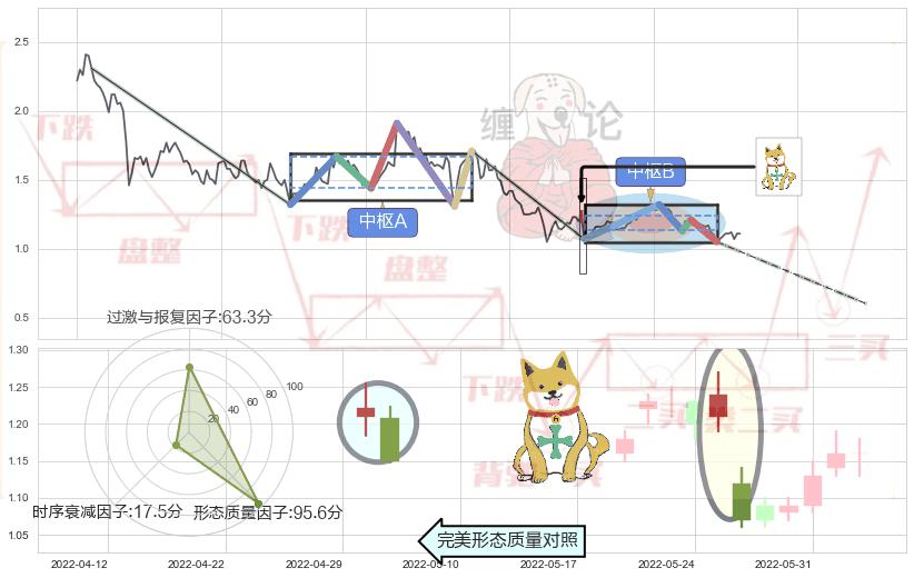 ➣ 下跌孤独十字星 + 缠论中枢点破位中枢B支撑下拉信号叠加后【信号初始稳固度】偏低,【看空】信号叠加【可信度影响降权】