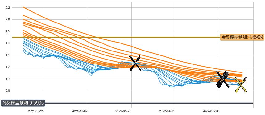 ➣ 34小时均线于(2022-07-07: 1.0109)形成【死叉】基于【死叉历史模型】预测死叉后最低波谷价格: 0.6303, 死叉后最低价格0.8500,尚未达到预测最低波谷价格, 预期继续下跌