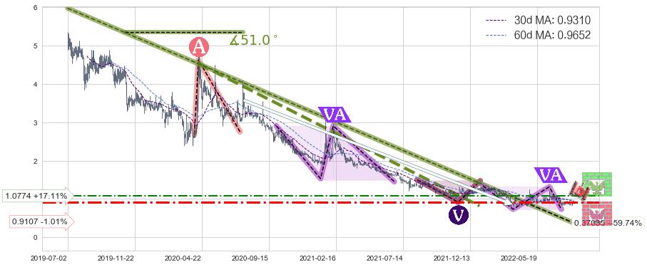 ♘ 阻力价格位1.0774,可信任强度50.51%,距离最后交易2022-08-12形成的收盘价格0.9200相差 +17.11%