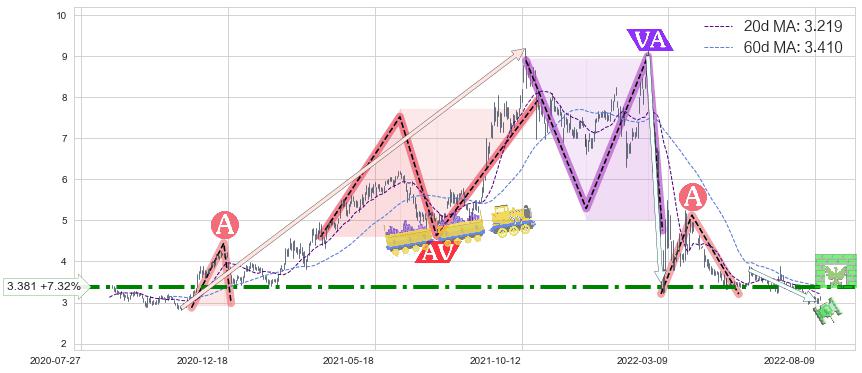 2022-05-12: 第一阻力位3.381有效抑制了下跌浪,成功阻止了价格的继续下跌。